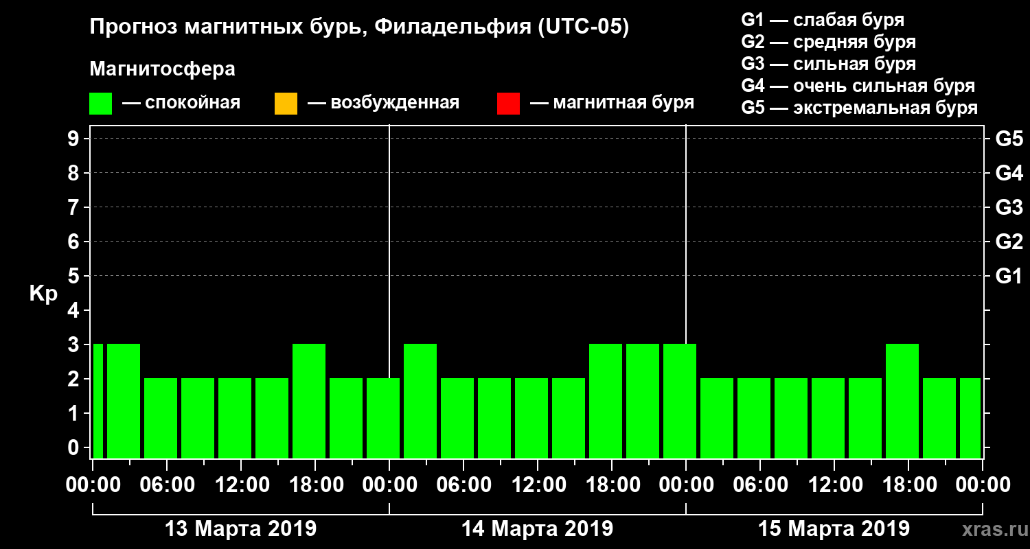 Прогноз магнитных бурь в Филадельфии — 13 марта 2019 года