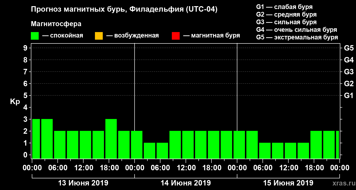 Прогноз магнитных бурь в Филадельфии — 13 июня 2019 года