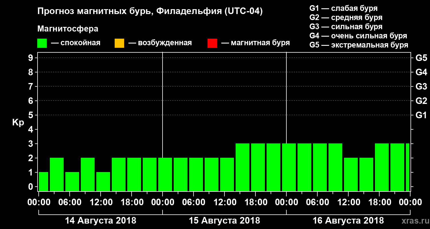 Прогноз магнитных бурь в Филадельфии — 14 августа 2018 года