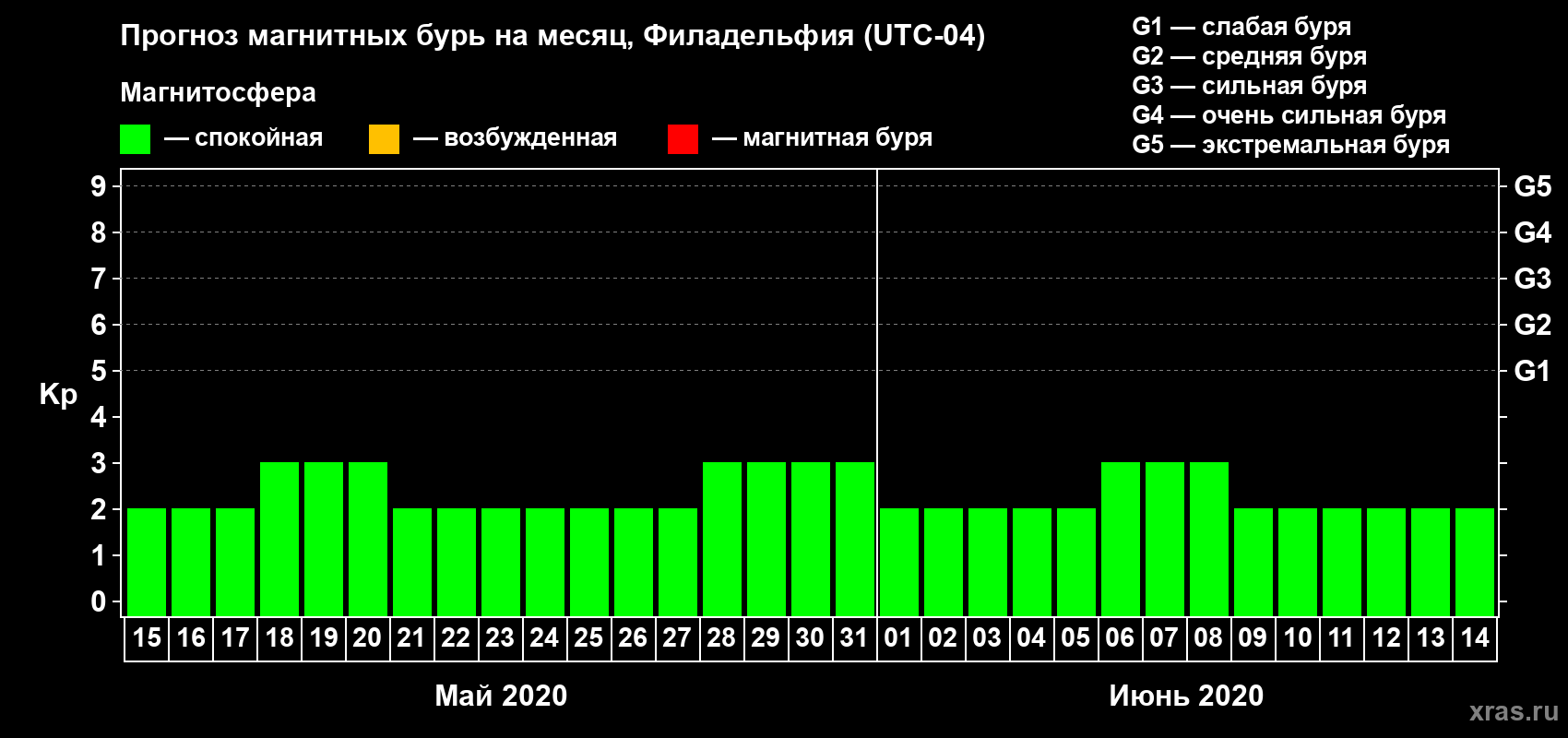 Прогноз магнитных бурь в Филадельфии — 15 мая 2020 года