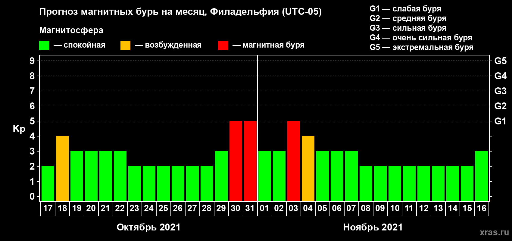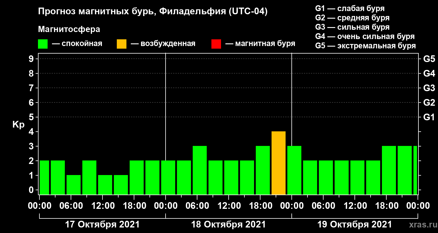 Прогноз магнитных бурь в Филадельфии — 17 октября 2021 года