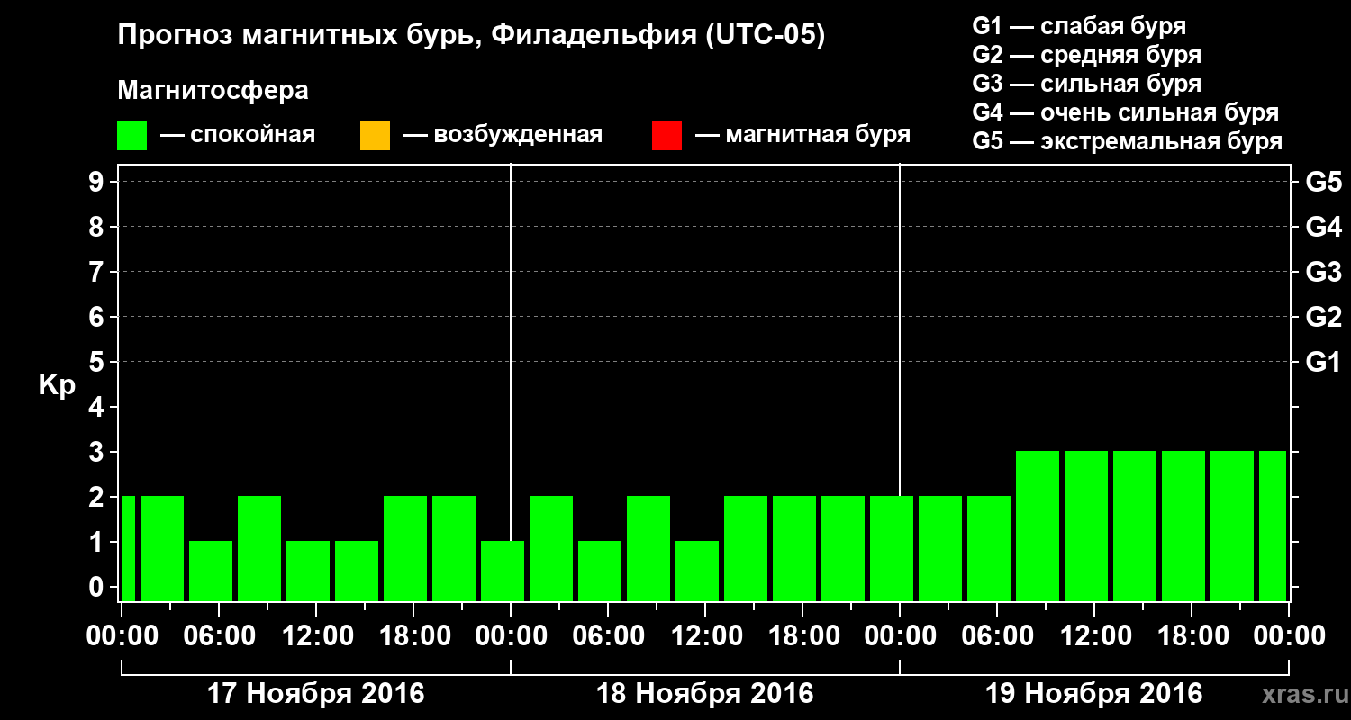 Прогноз магнитных бурь в Филадельфии — 17 ноября 2016 года