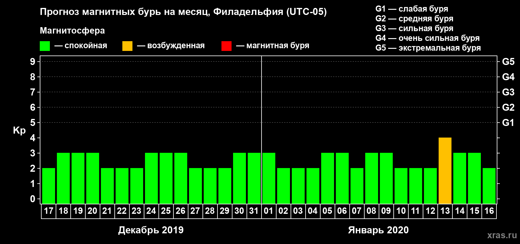 Прогноз магнитных бурь в Филадельфии — 17 декабря 2019 года