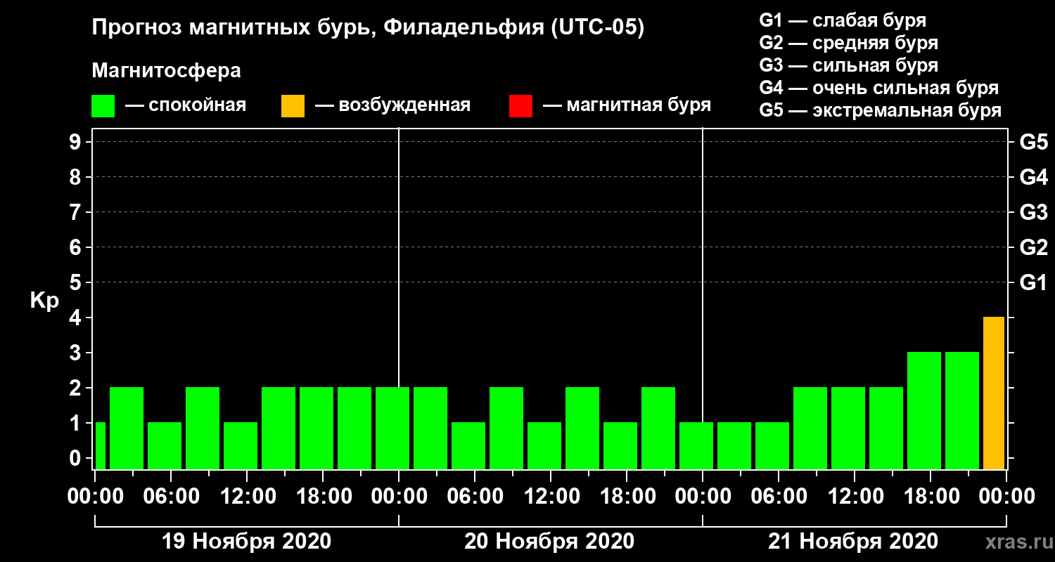 Прогноз магнитных бурь в Филадельфии — 19 ноября 2020 года