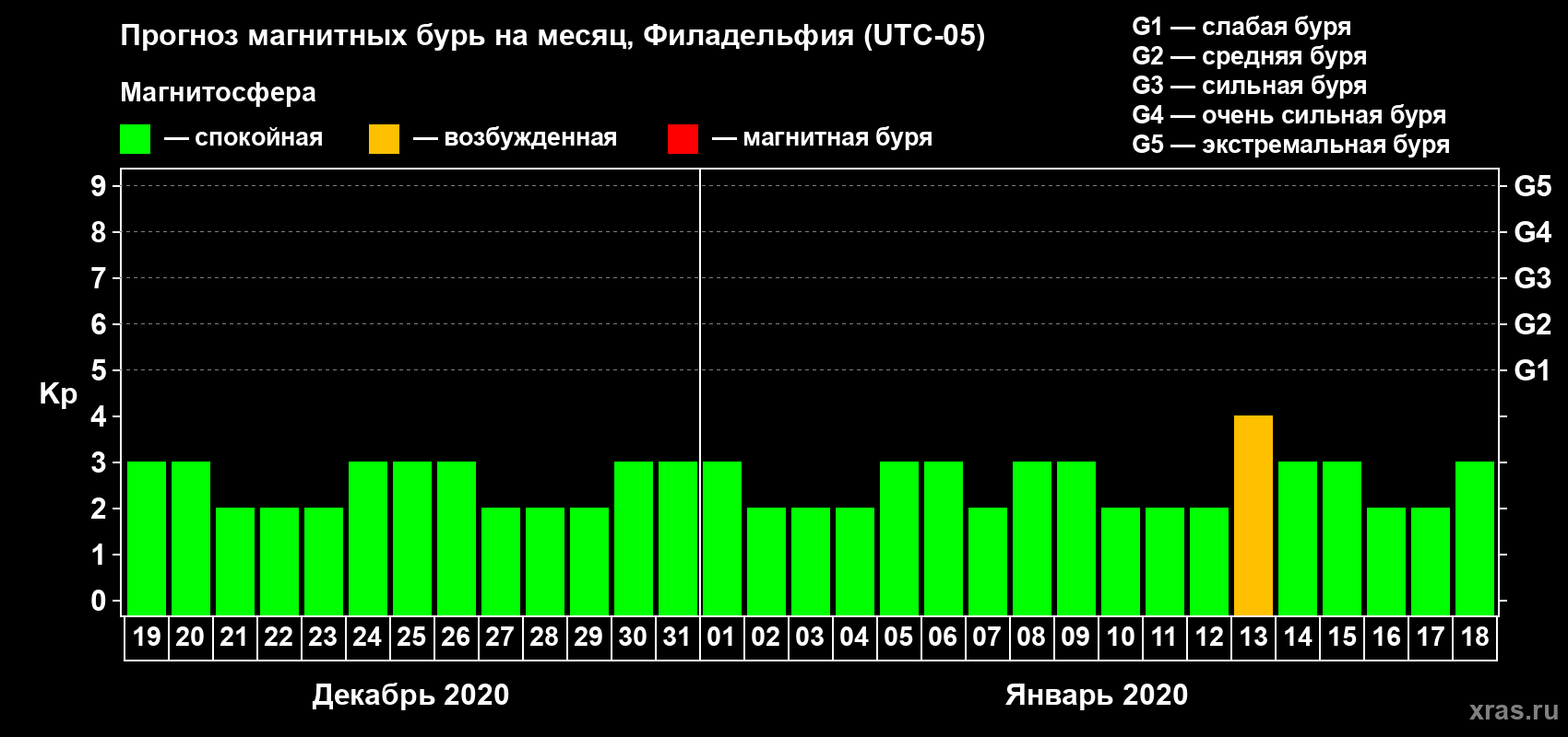 Прогноз магнитных бурь в Филадельфии — 19 декабря 2019 года