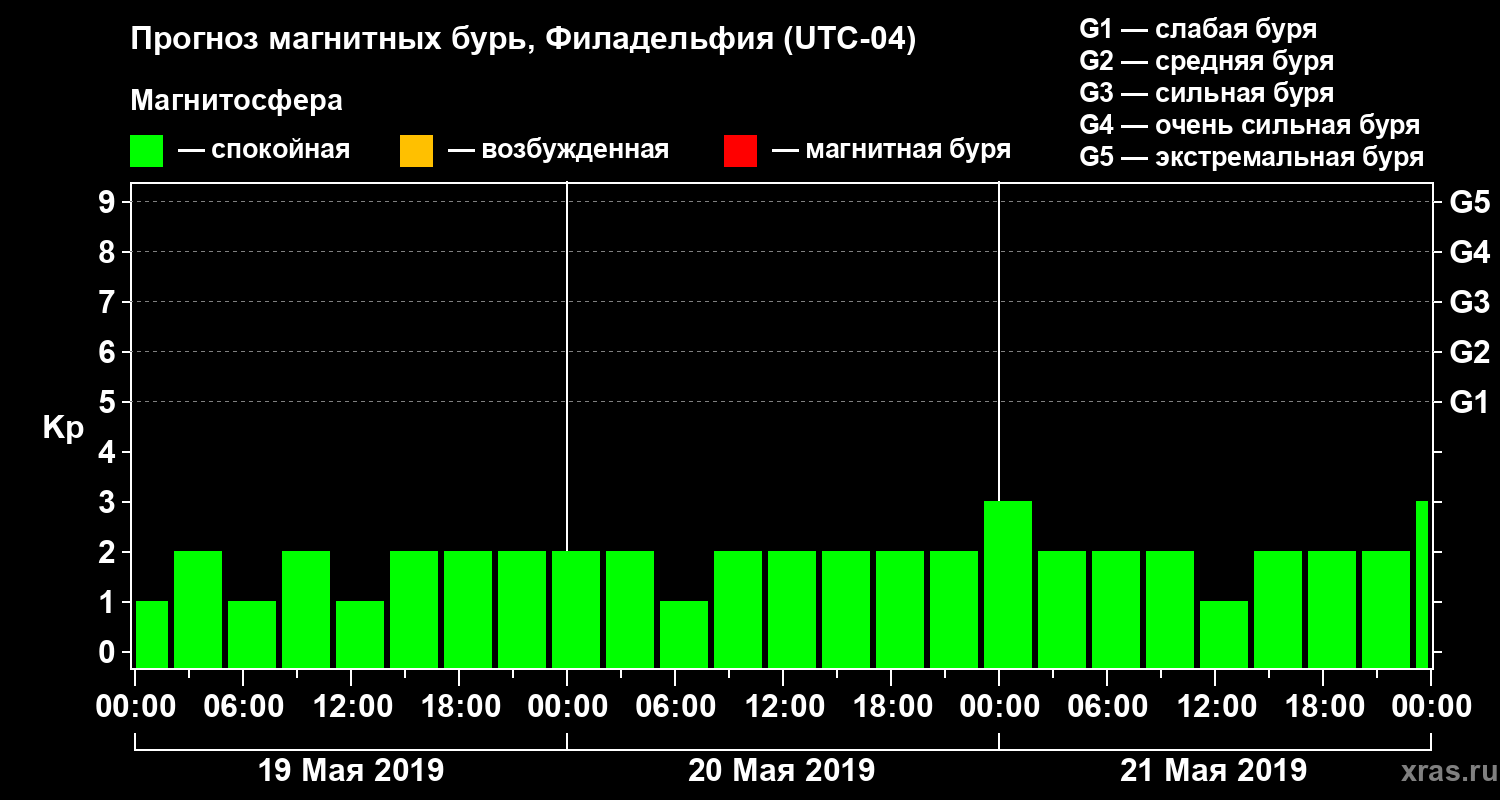 Прогноз магнитных бурь в Филадельфии — 19 мая 2019 года