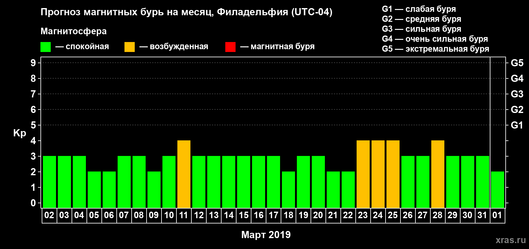 Прогноз магнитных бурь в Филадельфии — 2 марта 2019 года