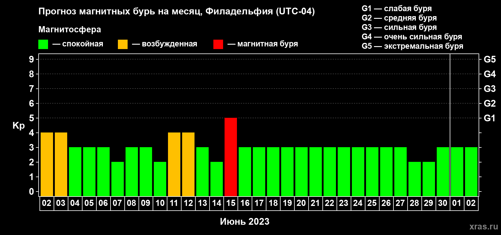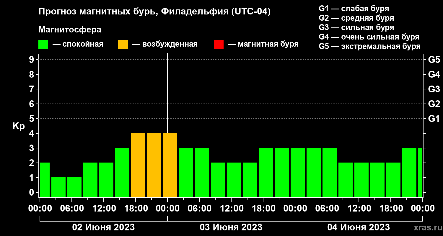 Прогноз магнитных бурь в Филадельфии — 2 июня 2023 года