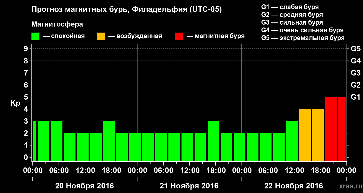 Прогноз магнитных бурь в Филадельфии — 20 ноября 2016 года