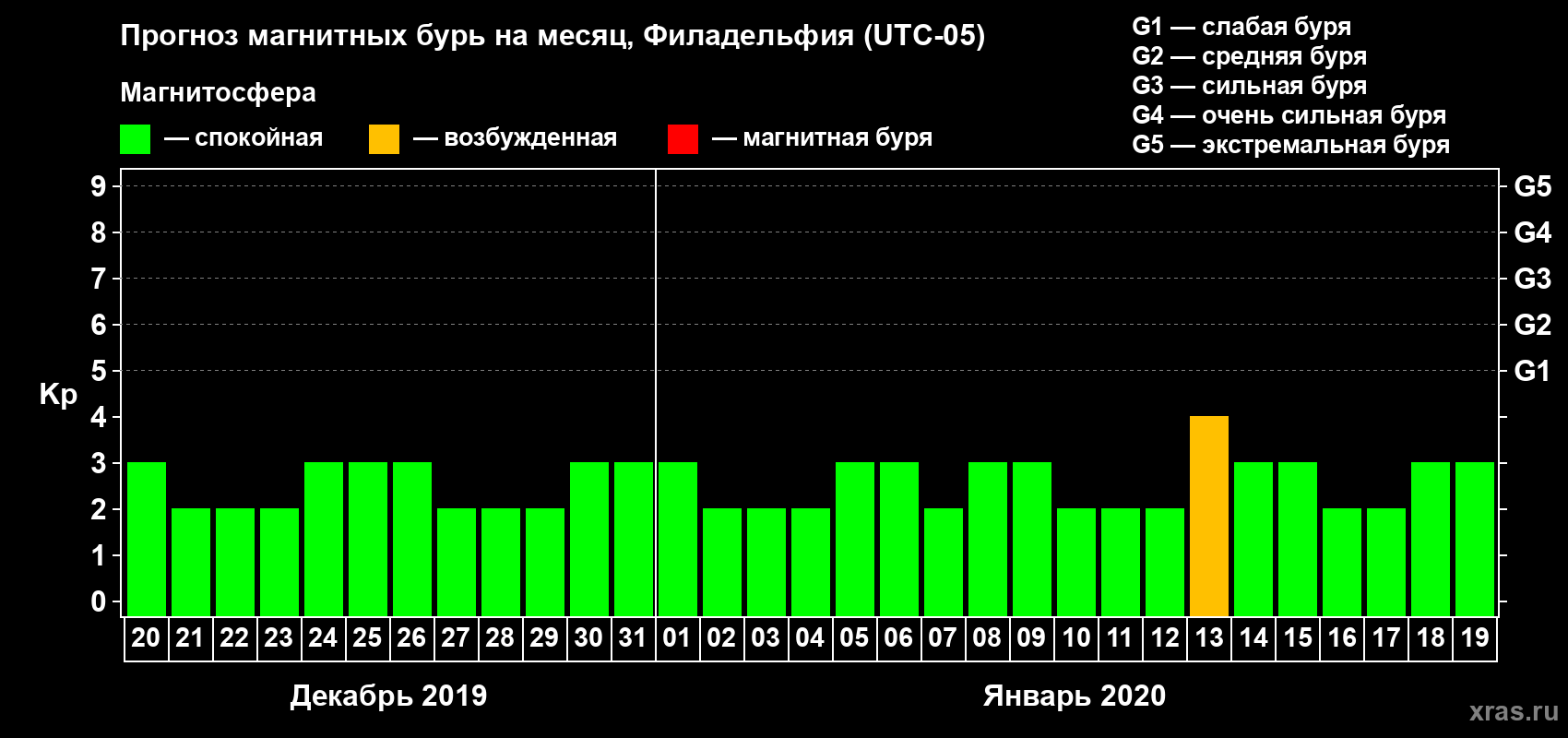 Прогноз магнитных бурь в Филадельфии — 20 декабря 2019 года