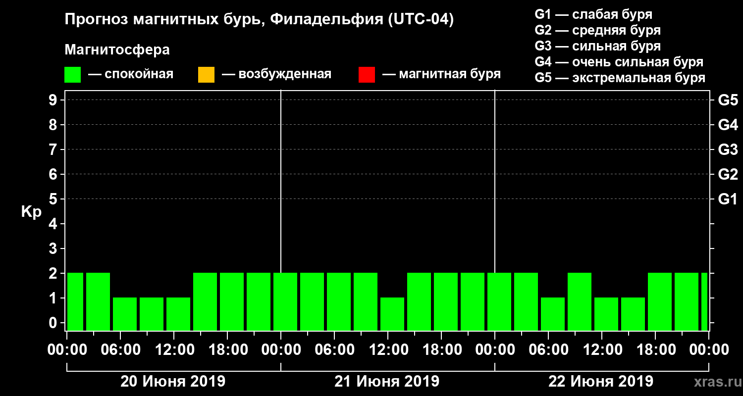 Прогноз магнитных бурь в Филадельфии — 20 июня 2019 года