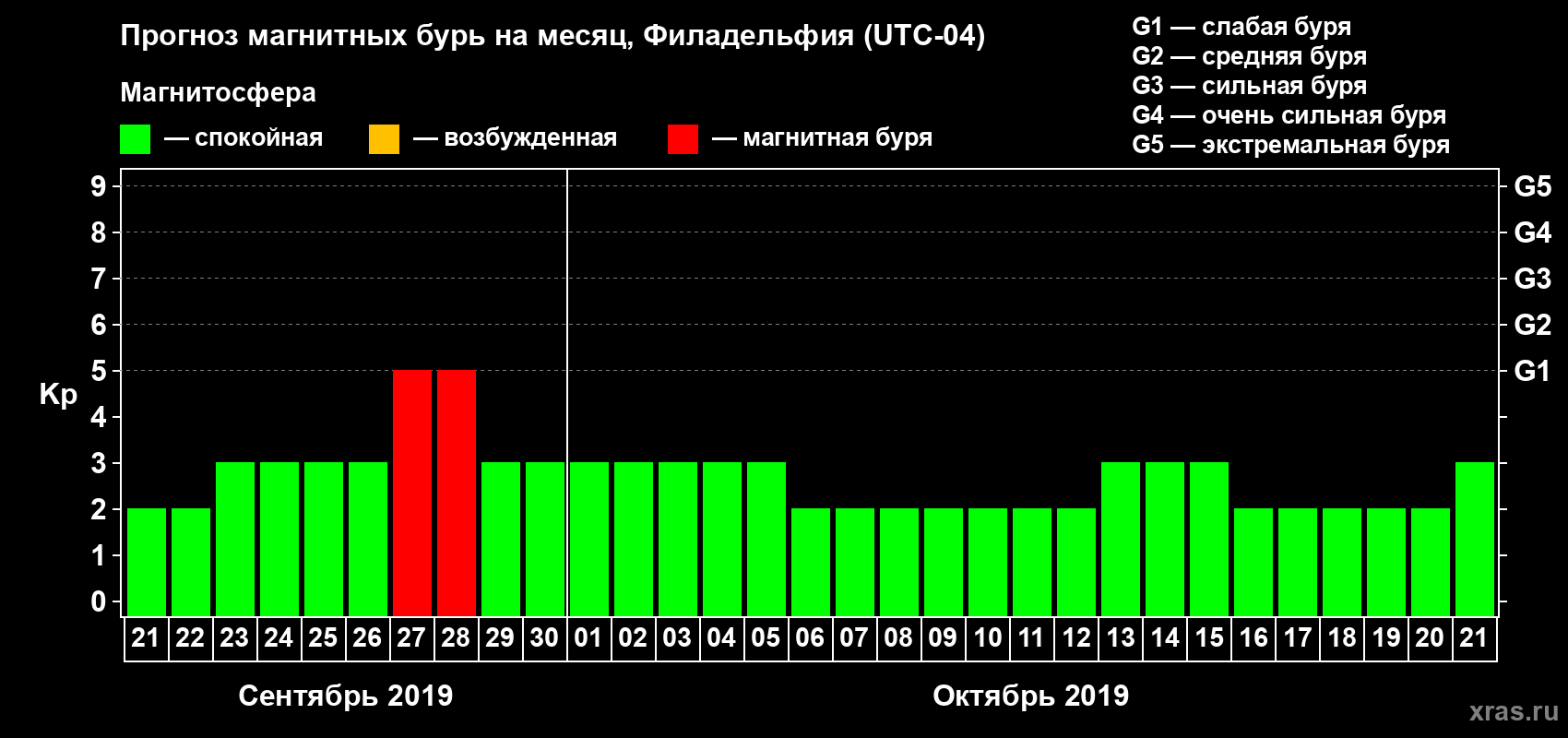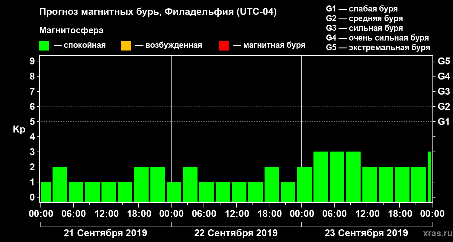Прогноз магнитных бурь в Филадельфии — 21 сентября 2019 года