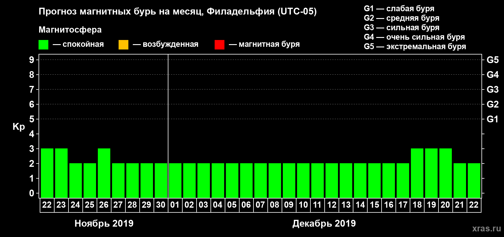 Прогноз магнитных бурь в Филадельфии — 22 ноября 2019 года