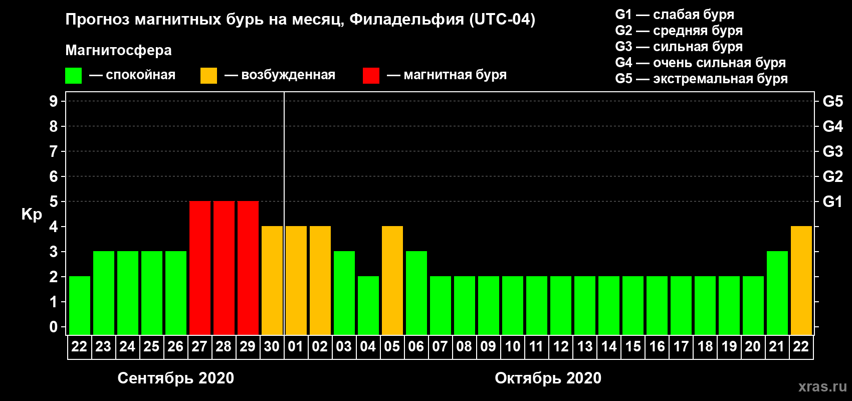 Прогноз магнитных бурь в Филадельфии — 22 сентября 2020 года