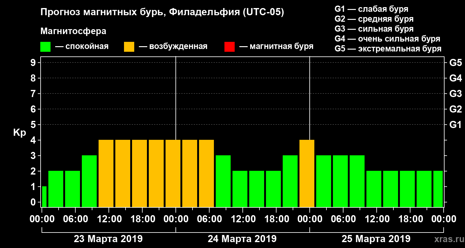 Прогноз магнитных бурь в Филадельфии — 23 марта 2019 года