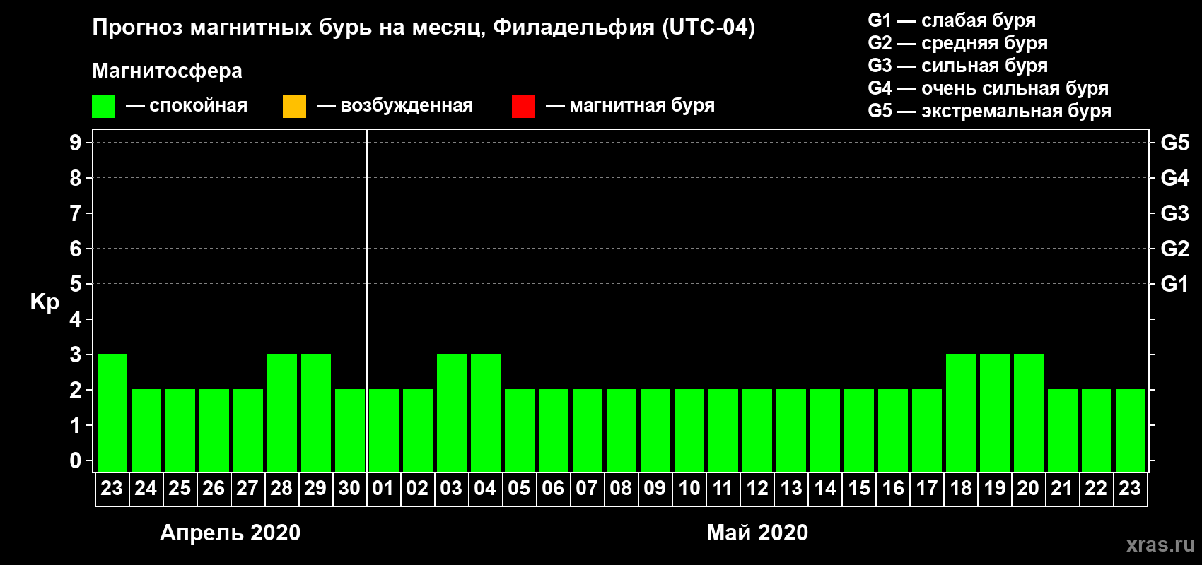 Прогноз магнитных бурь в Филадельфии — 23 апреля 2020 года
