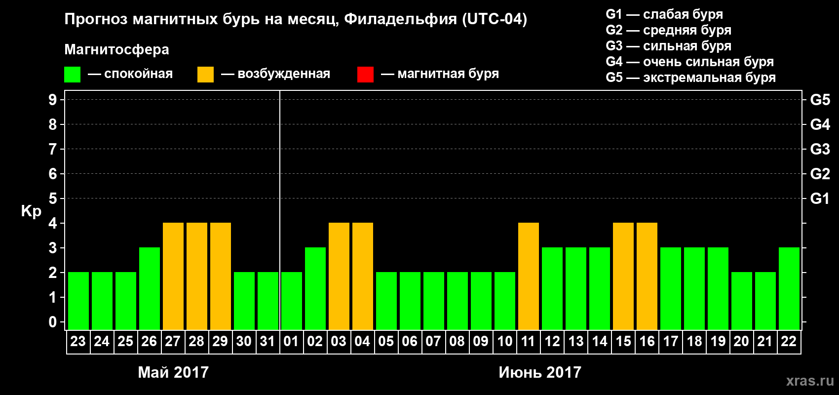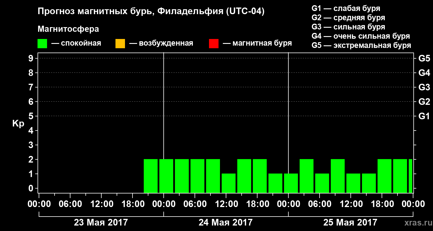 Прогноз магнитных бурь в Филадельфии — 23 мая 2017 года