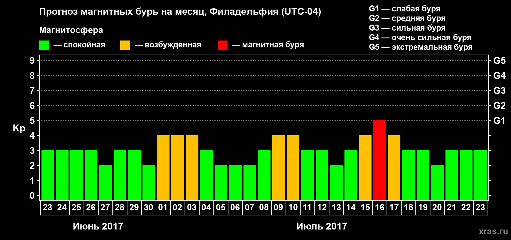 Прогноз магнитных бурь в Филадельфии — 23 июня 2017 года