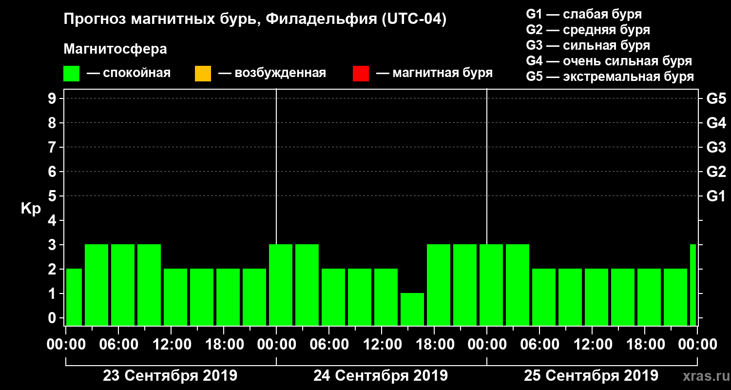 Прогноз магнитных бурь в Филадельфии — 23 сентября 2019 года