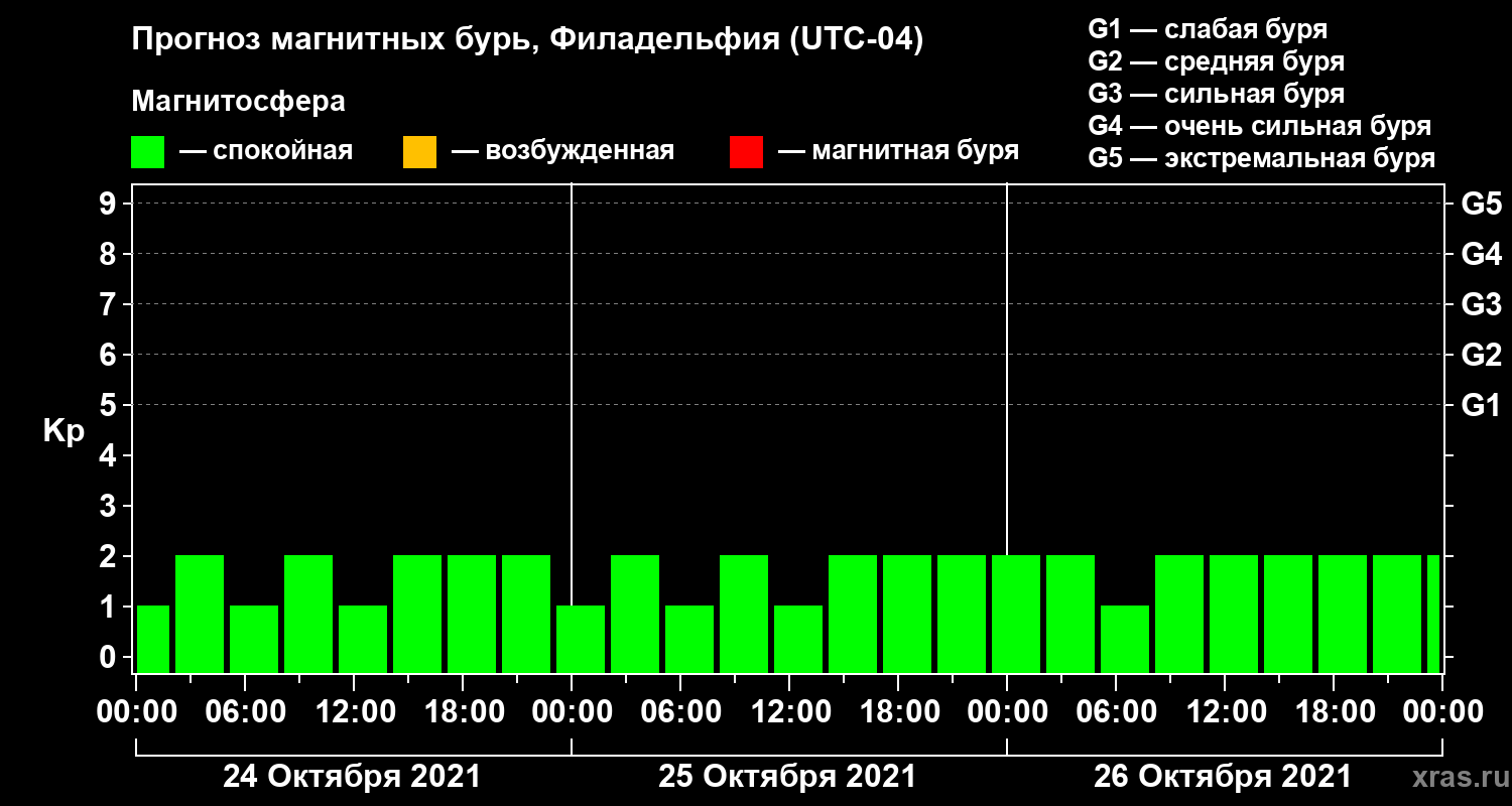 Прогноз магнитных бурь в Филадельфии — 24 октября 2021 года
