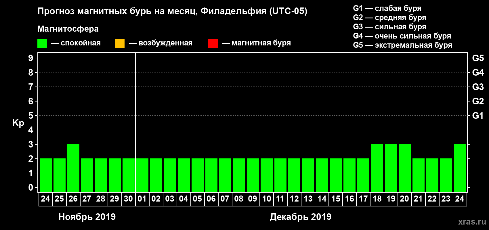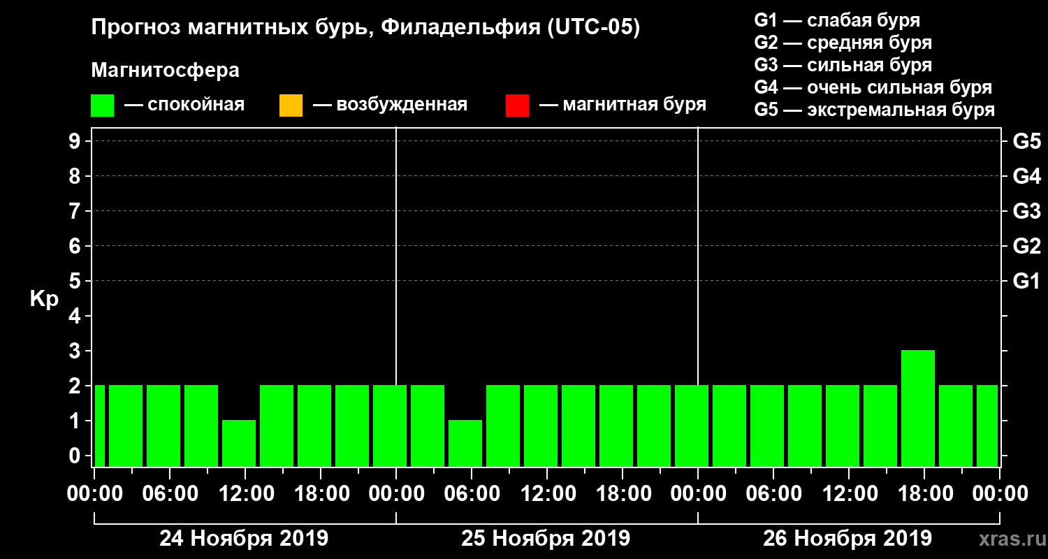 Прогноз магнитных бурь в Филадельфии — 24 ноября 2019 года