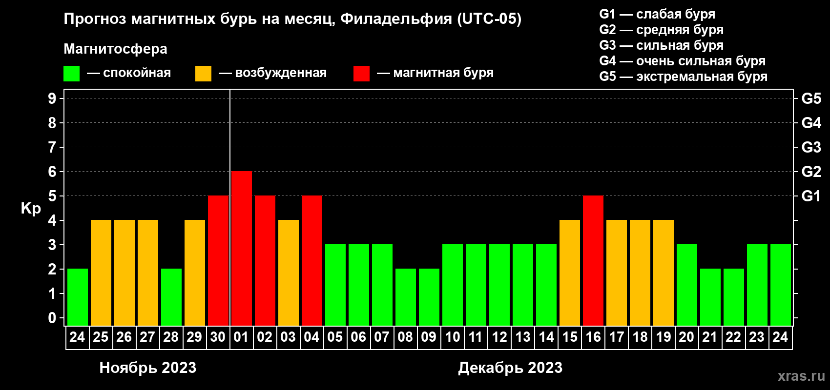 Прогноз магнитных бурь в Филадельфии — 24 ноября 2023 года