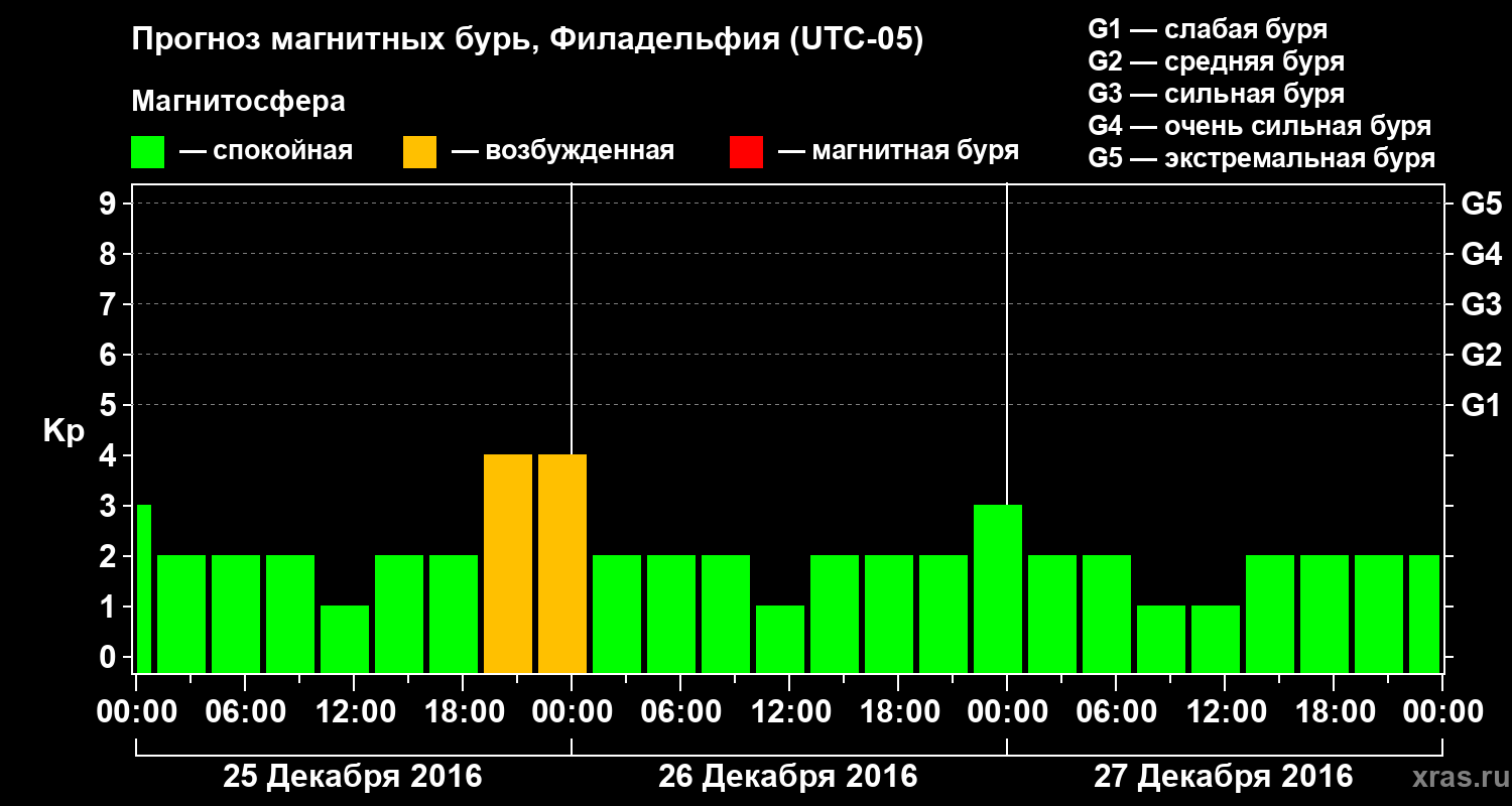 Прогноз магнитных бурь в Филадельфии — 25 декабря 2016 года