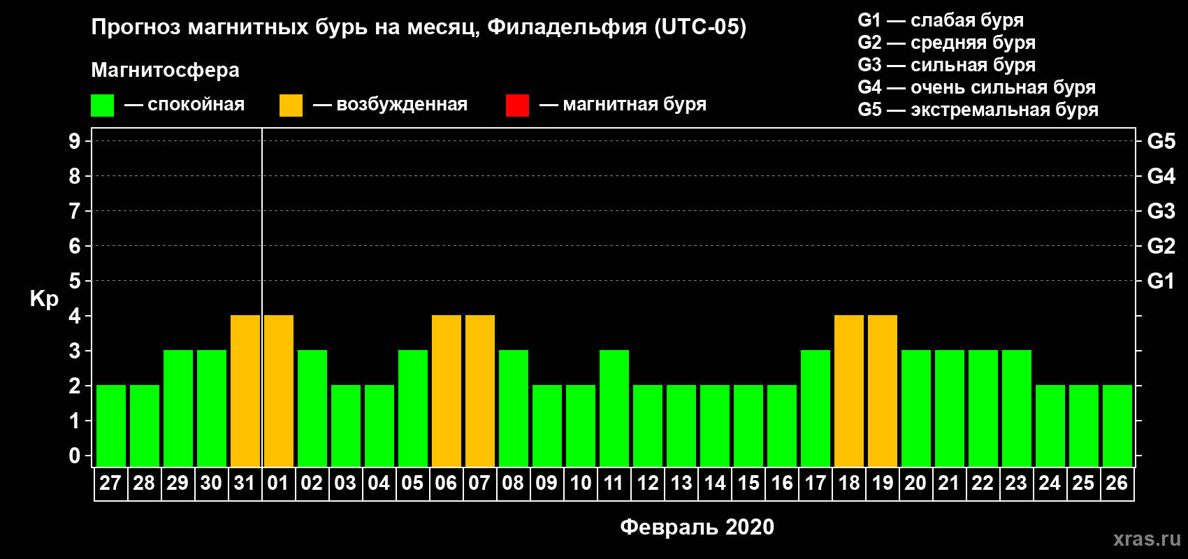 Прогноз магнитных бурь в Филадельфии — 27 января 2020 года