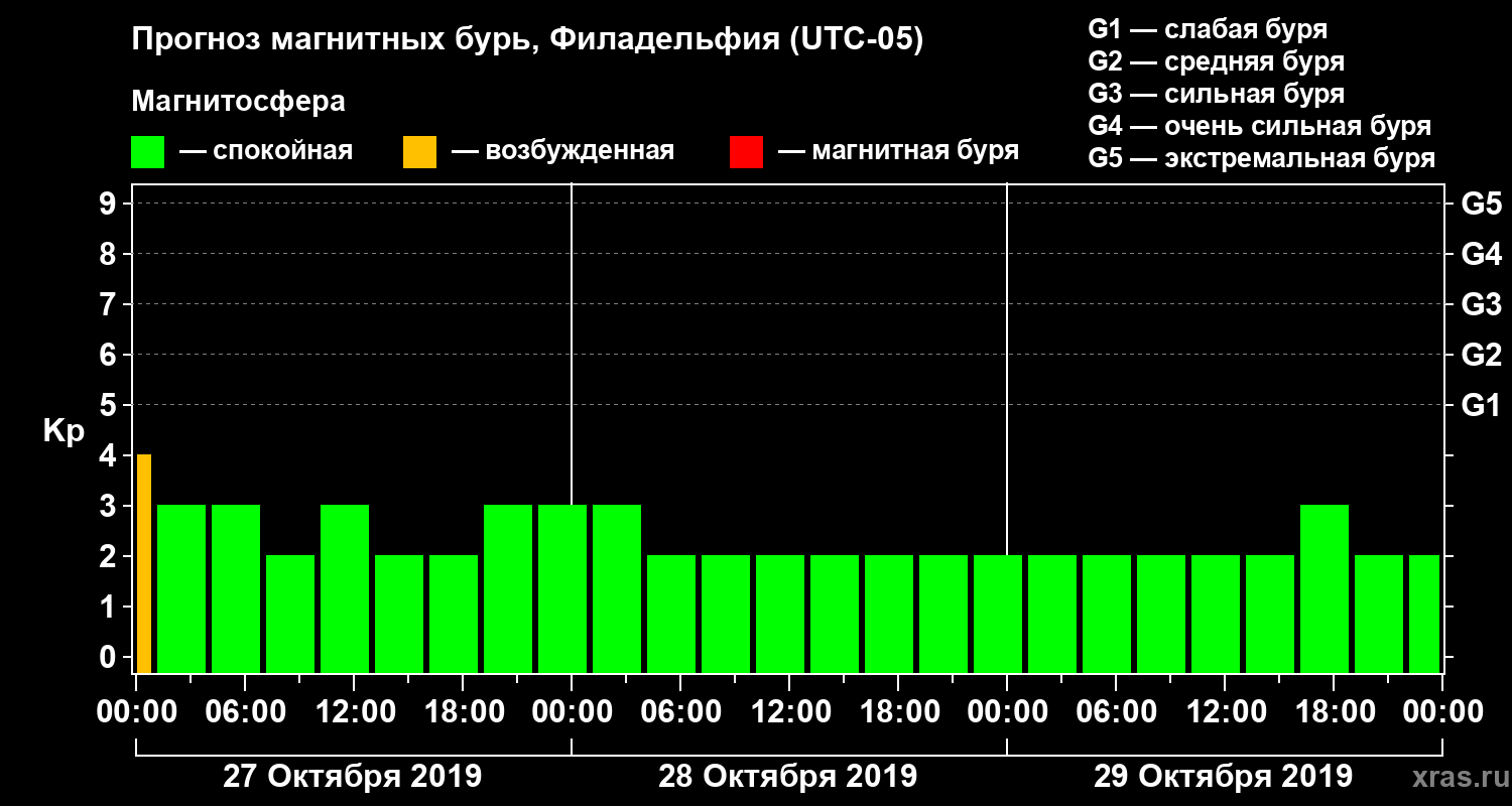 Прогноз магнитных бурь в Филадельфии — 27 октября 2019 года