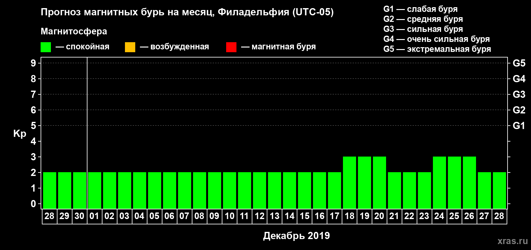 Прогноз магнитных бурь в Филадельфии — 28 ноября 2019 года