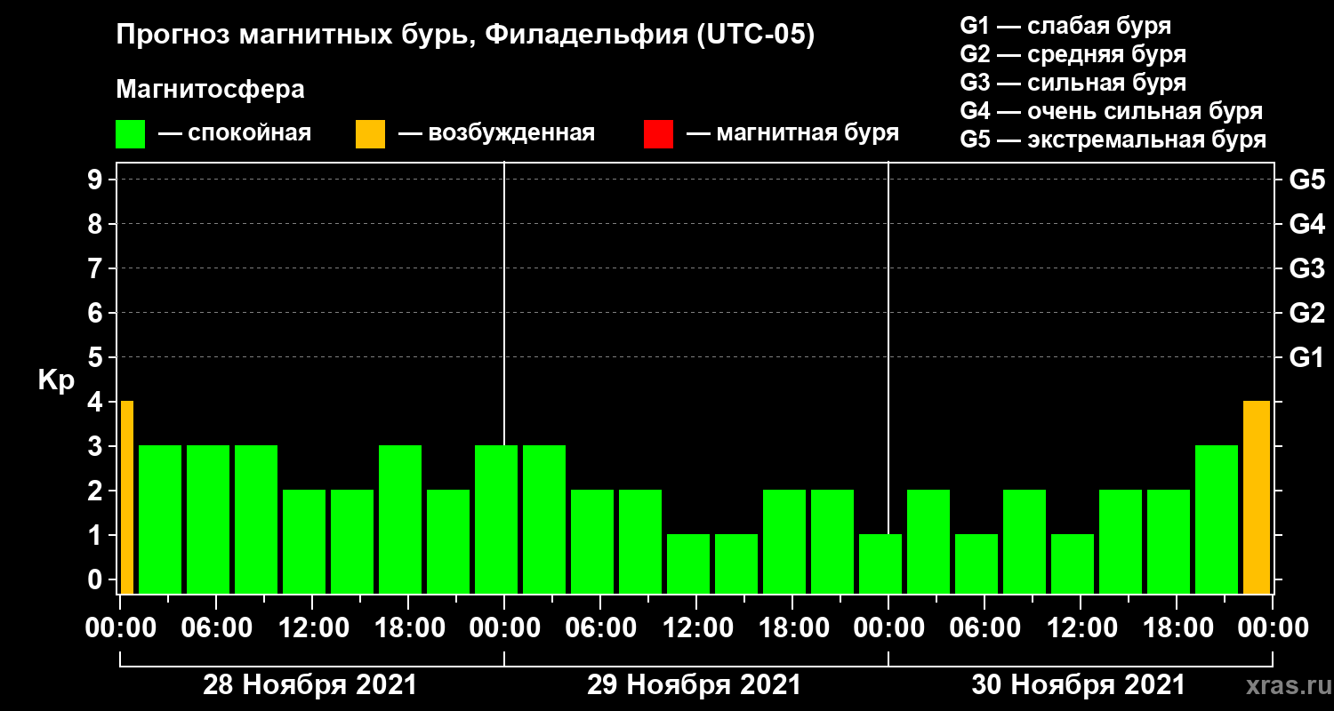 Прогноз магнитных бурь в Филадельфии — 28 ноября 2021 года
