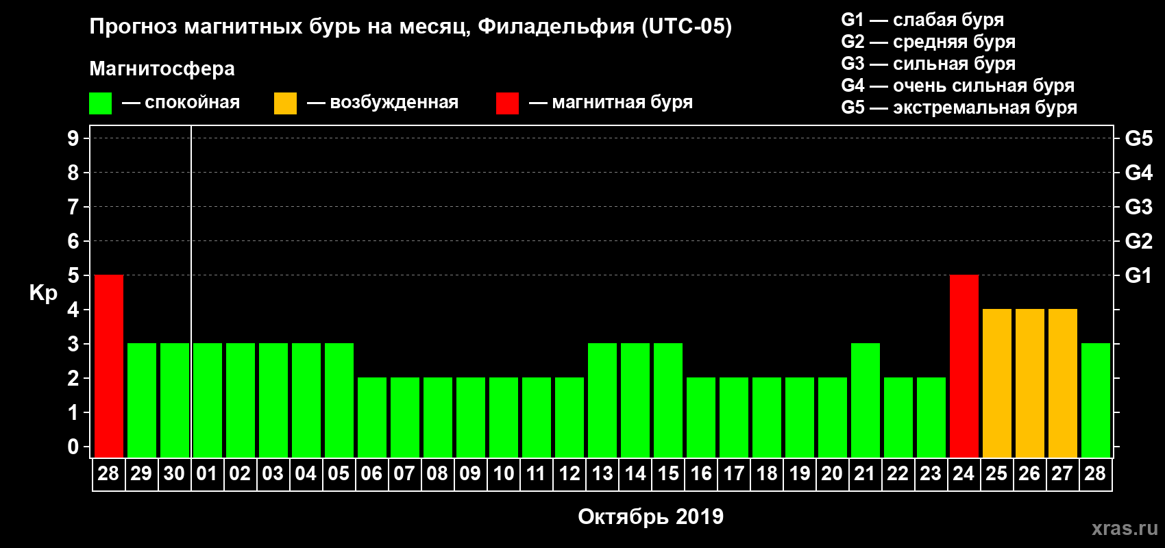 Прогноз магнитных бурь в Филадельфии — 28 сентября 2019 года