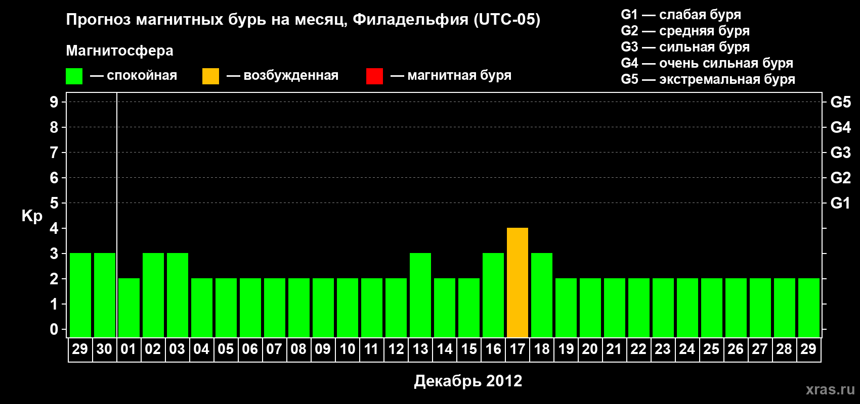 Прогноз магнитных бурь в Филадельфии — 29 ноября 2012 года