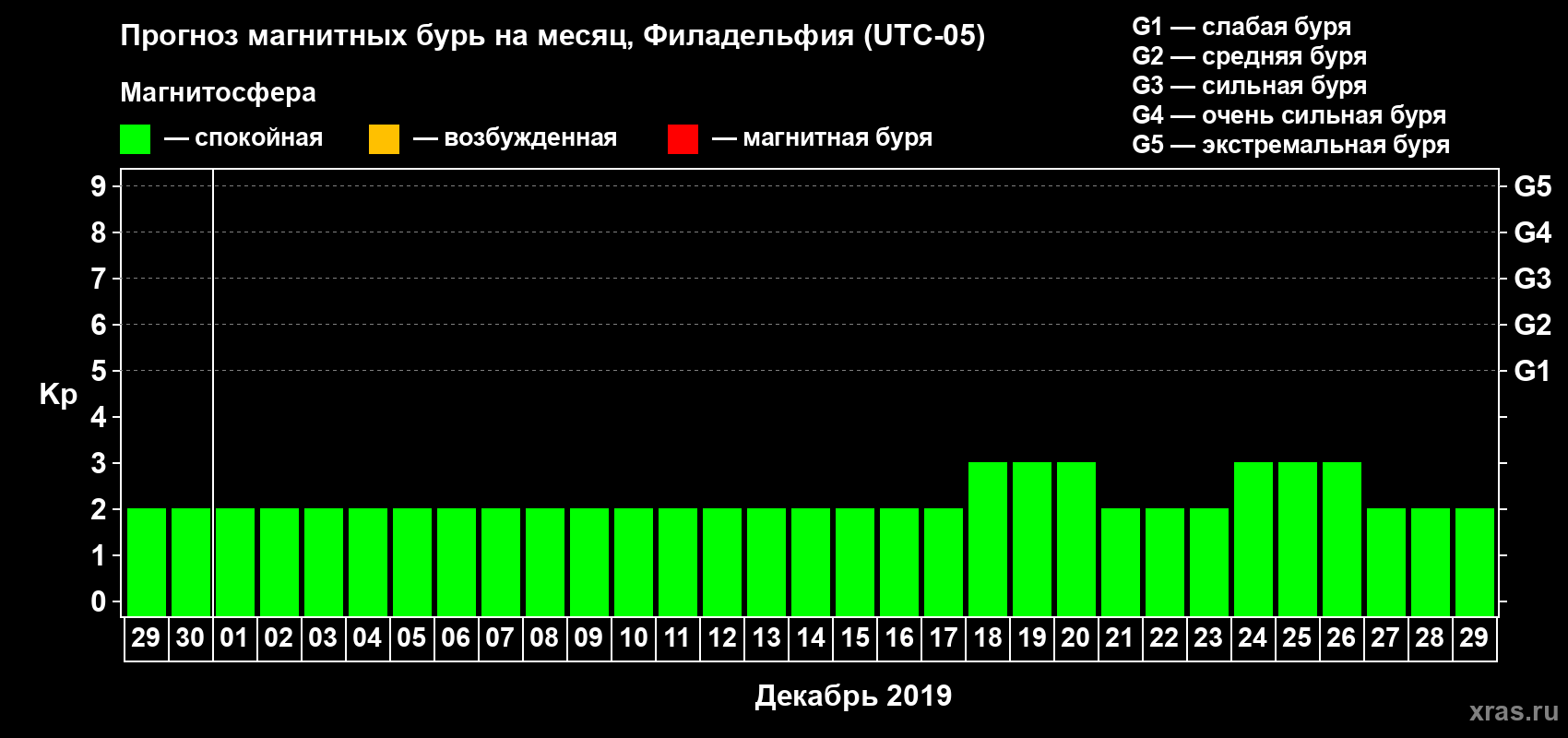 Прогноз магнитных бурь в Филадельфии — 29 ноября 2019 года