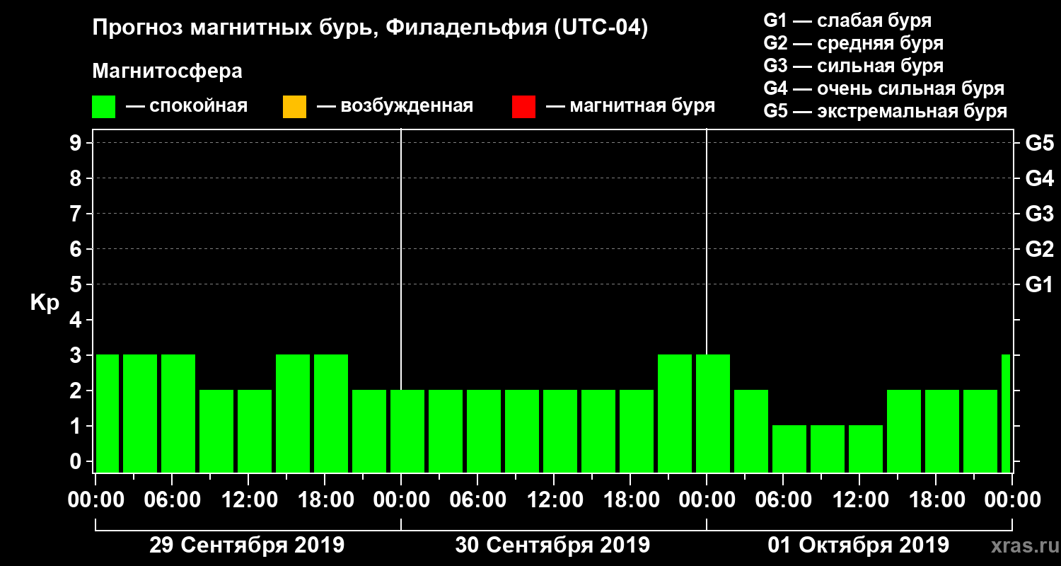 Прогноз магнитных бурь в Филадельфии — 29 сентября 2019 года