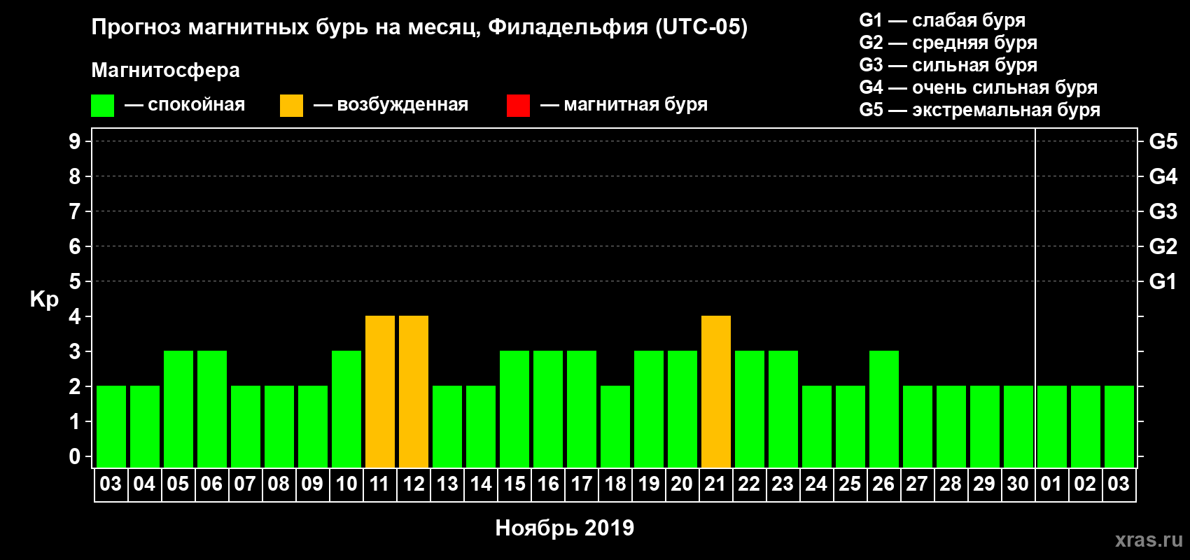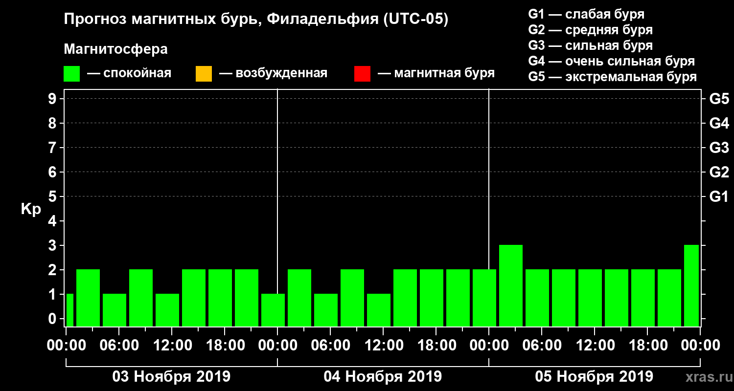Прогноз магнитных бурь в Филадельфии — 3 ноября 2019 года
