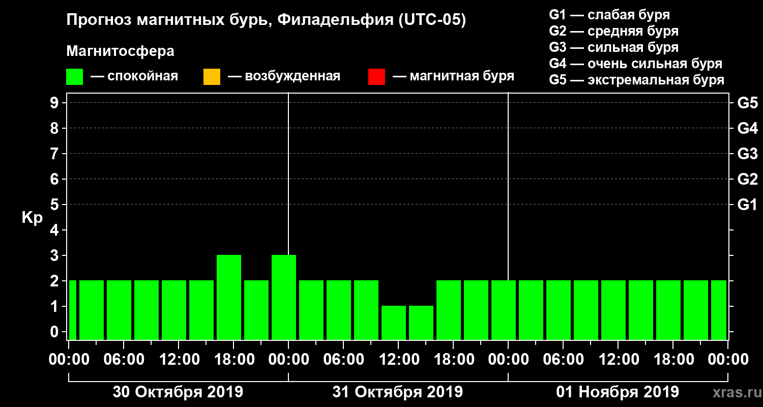 Прогноз магнитных бурь в Филадельфии — 30 октября 2019 года