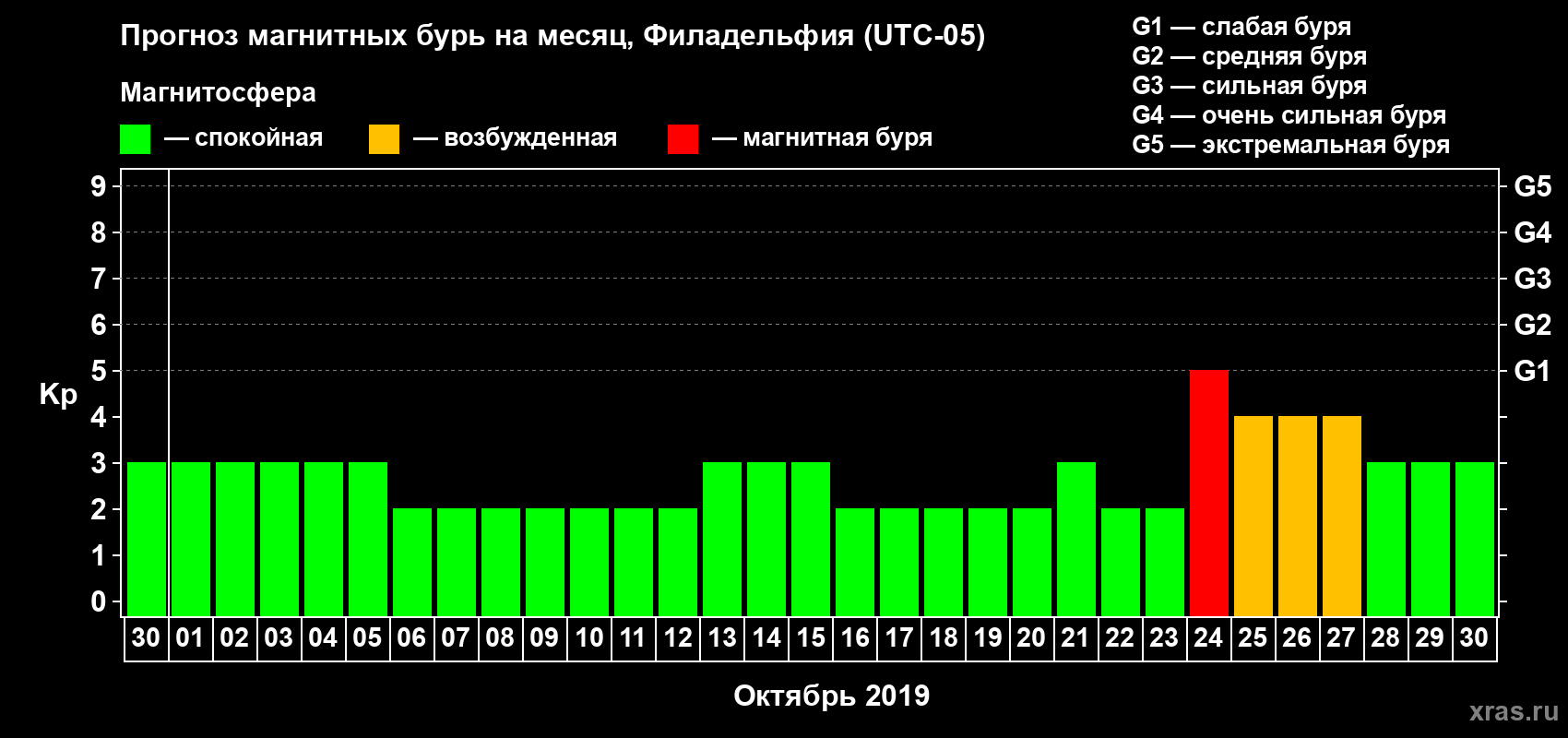 Прогноз магнитных бурь в Филадельфии — 30 сентября 2019 года
