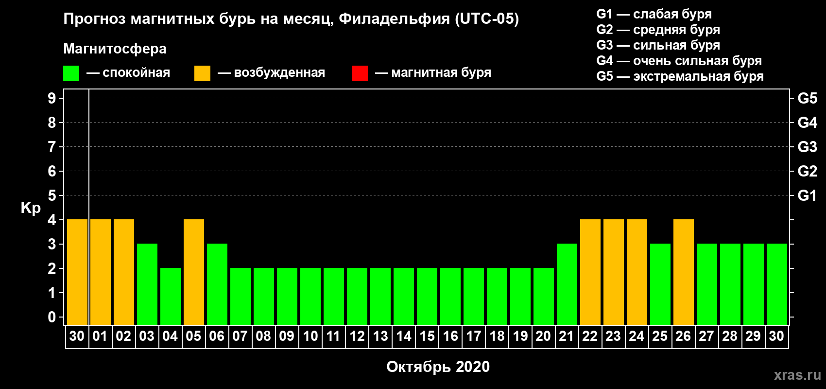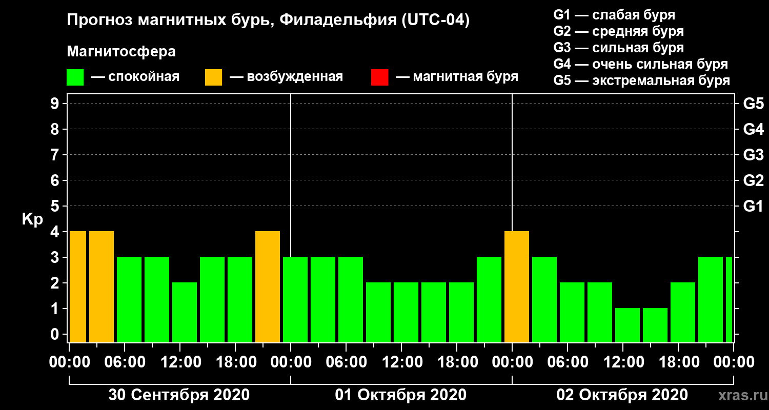 Прогноз магнитных бурь в Филадельфии — 30 сентября 2020 года