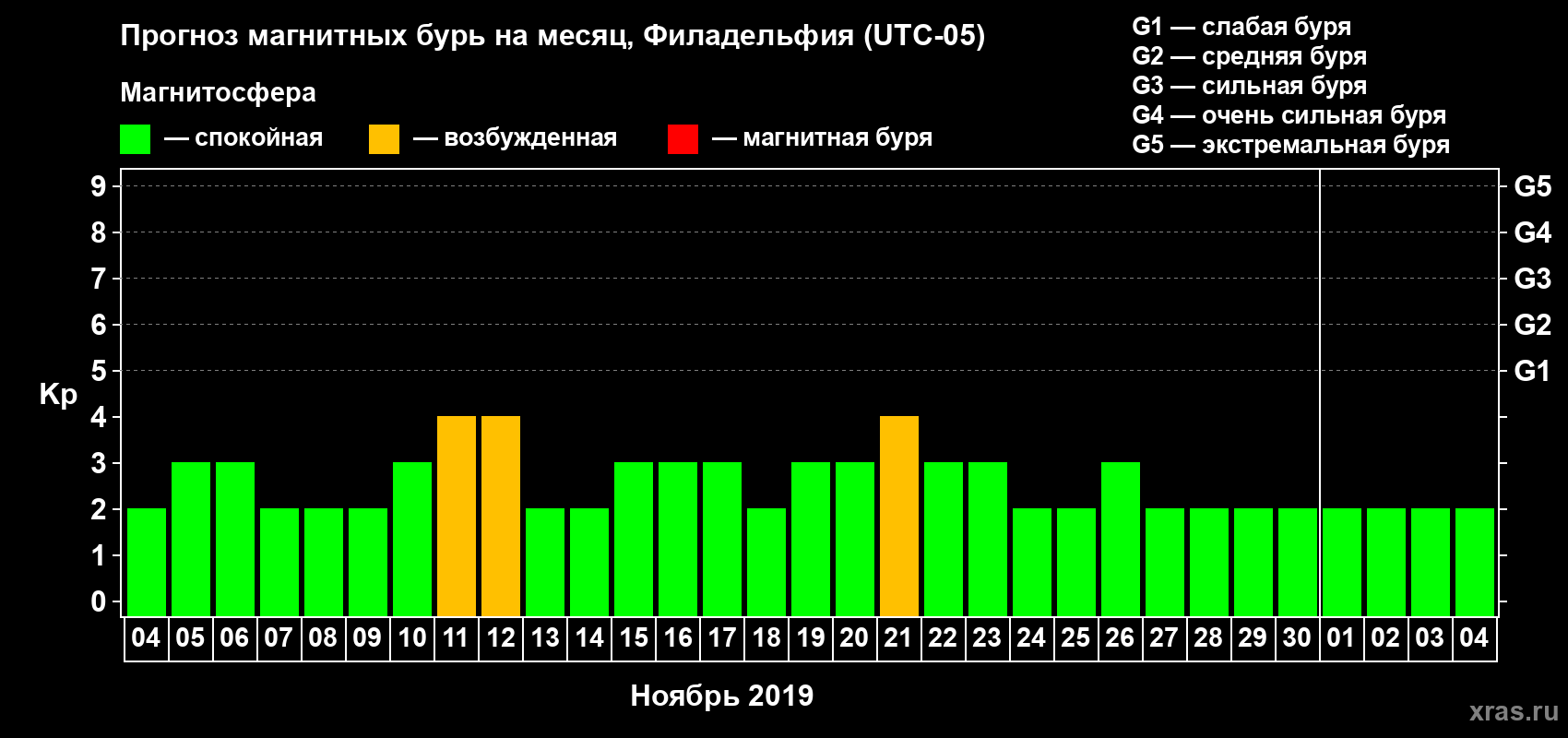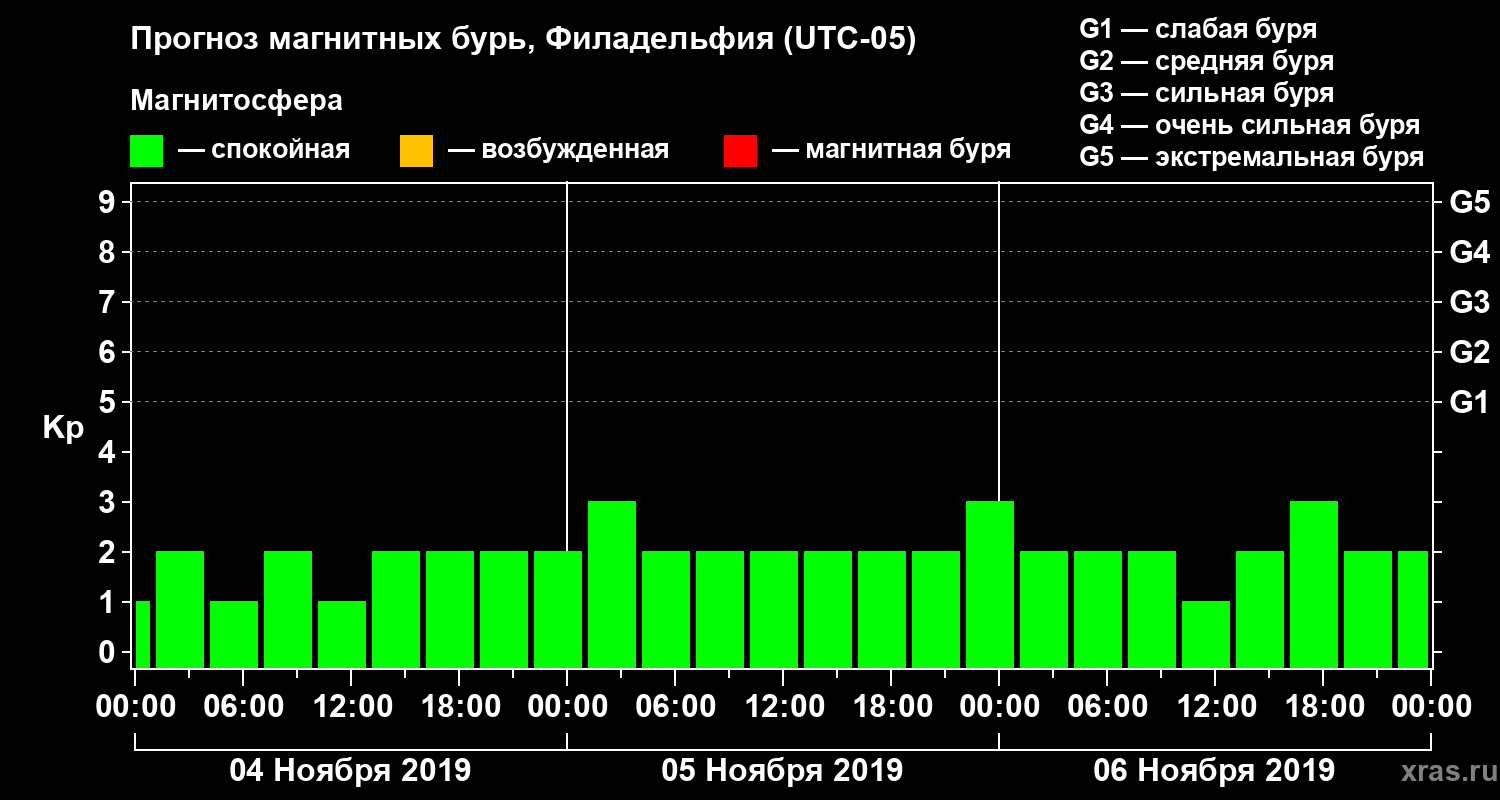 Прогноз магнитных бурь в Филадельфии — 4 ноября 2019 года