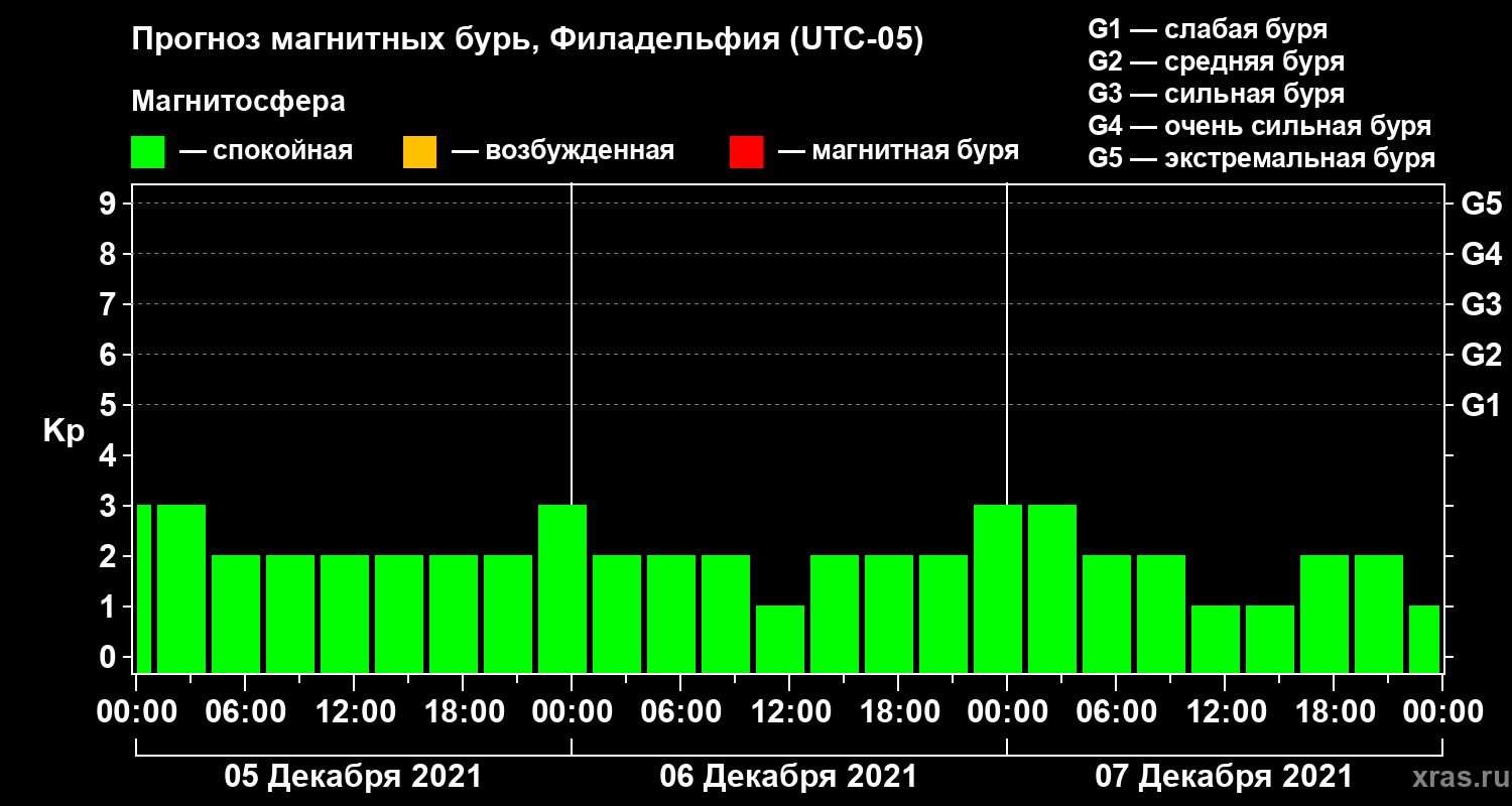 Прогноз магнитных бурь в Филадельфии — 5 декабря 2021 года