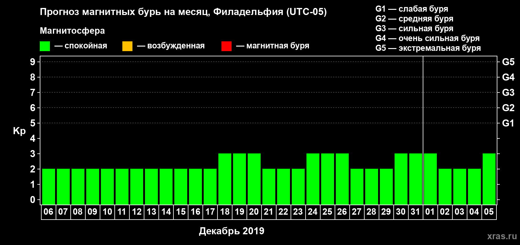 Прогноз магнитных бурь в Филадельфии — 6 декабря 2019 года