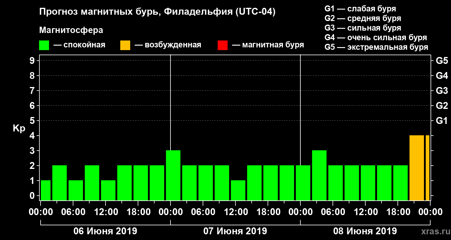 Прогноз магнитных бурь в Филадельфии — 6 июня 2019 года