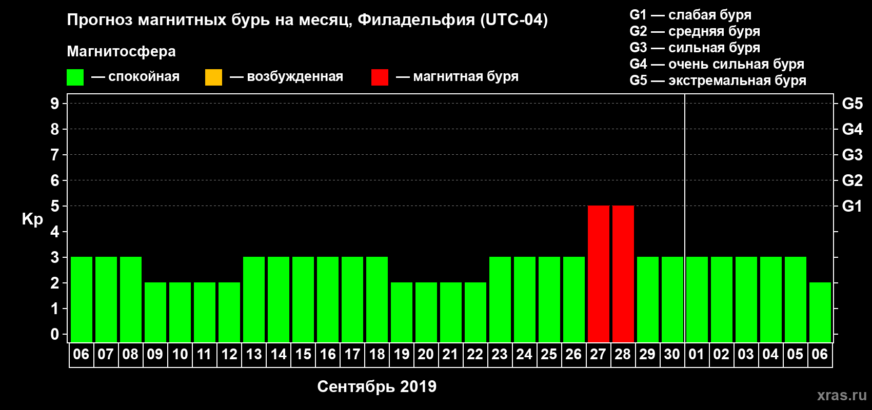 Прогноз магнитных бурь в Филадельфии — 6 сентября 2019 года
