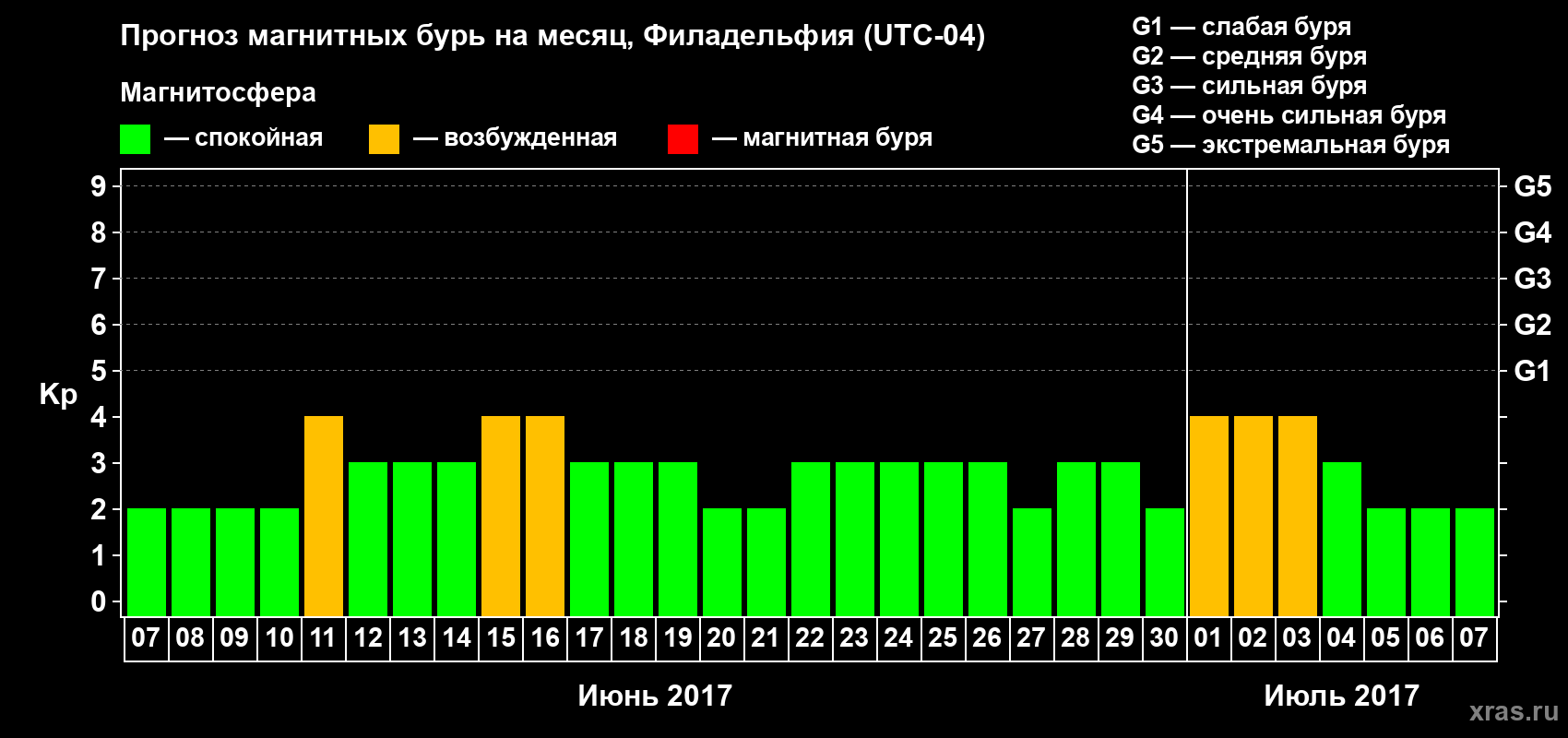 Прогноз магнитных бурь в Филадельфии — 7 июня 2017 года