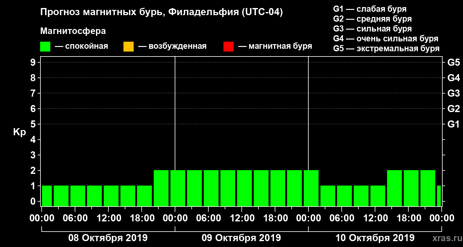 Прогноз магнитных бурь в Филадельфии — 8 октября 2019 года