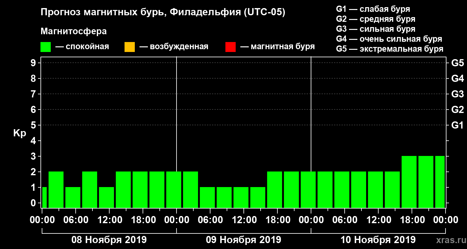 Прогноз магнитных бурь в Филадельфии — 8 ноября 2019 года