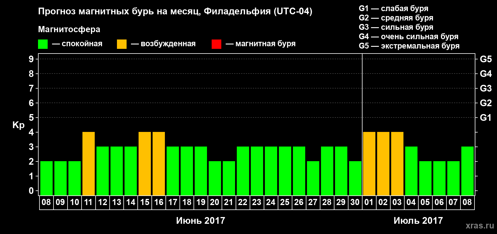Прогноз магнитных бурь в Филадельфии — 8 июня 2017 года