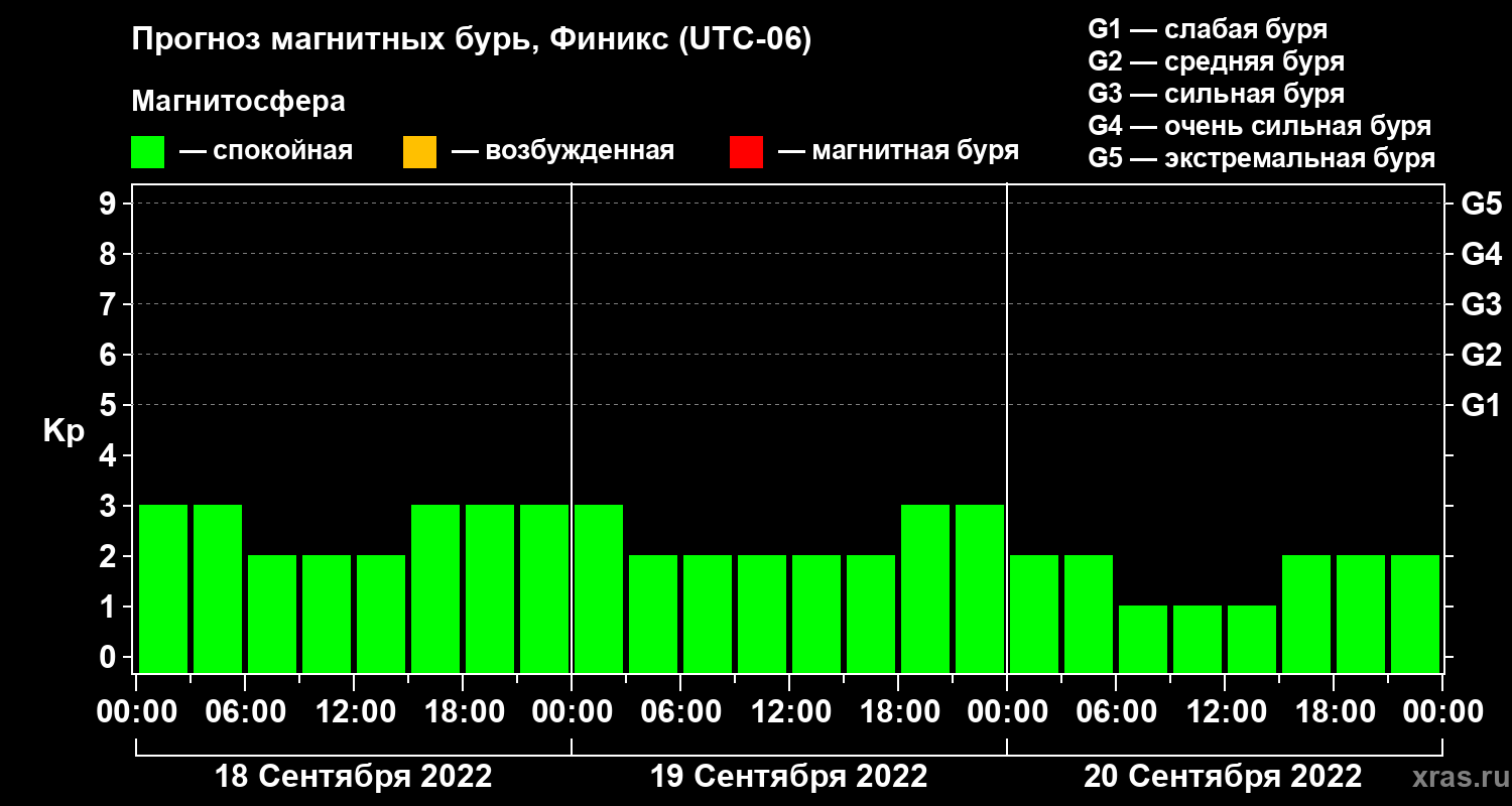 Прогноз магнитных бурь в Финиксе — 18 сентября 2022 года