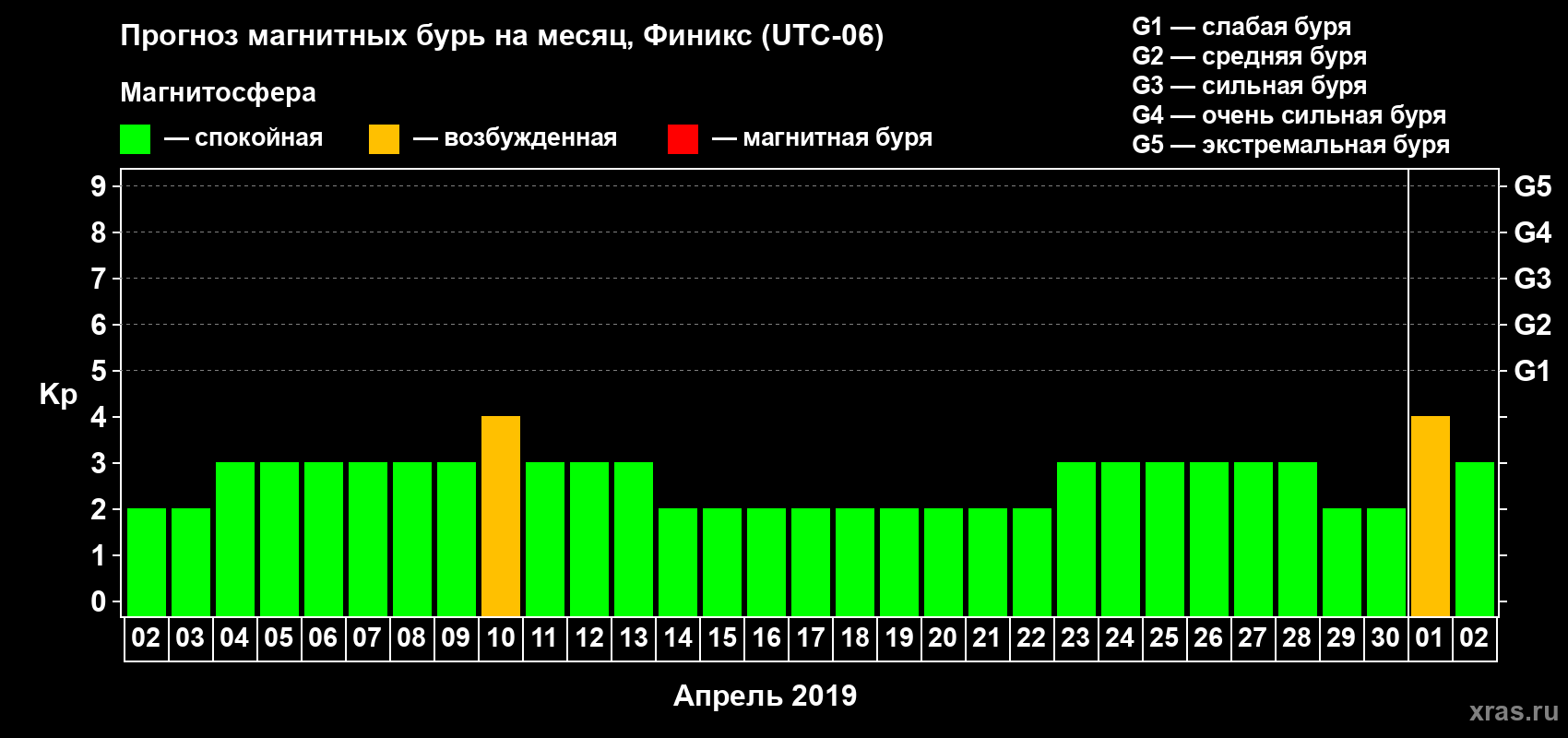 Прогноз магнитных бурь в Финиксе — 2 апреля 2019 года